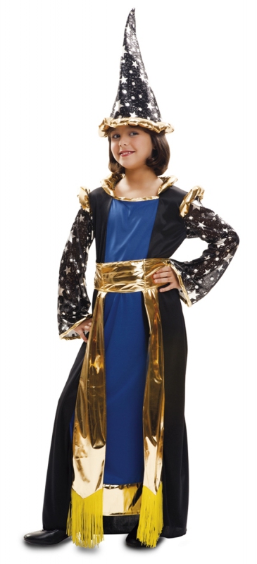 Součástí kostýmu čarodějnice jsou šaty, klobouk a pásek. Dlouhé černé šaty mají středem všitou tmavomodrou vsadku, která má dole široký zlatý lem. Kolem pasu je široký zlatý pásek s dvěma dlouhými visícími konci zdobenými žlutými třásněmi. Kostým doplňuje černý čarodějnický klobouk se zlatým okrajem a stříbrnými hvězdičkami.