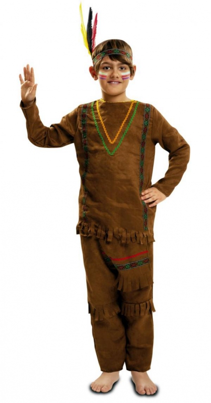 Součástí kostýmu je čelenka, košile a kalhoty. Tmavohnědé kalhoty mají pod koleny našity třásně stejné barvy. Košile s dlouhými rukávy je taktéž z tmavohnědé látky. Spodní lem košile je z třásní. Výstřih je zdoben žlutou, zelenou a světlehnědou vlnitou stužkou. Na bocích hrudníku jsou dva svislé pruhy ozdobné barevné stuhy. Stejná stuha je použita i na čelenku se třemi barevnými pery a na ozdobení tmavohnědé zástěrky s třásněmi a červenou stuhou, která je součástí kalhot.