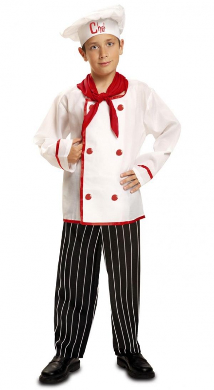 Součástí kostýmu je čepice, šátek, košile a kalhoty. Bílá košile s dlouhým rukávem, který je ozdoben červeným proužkem. Stejným proužkem je lemován výstřih, zapínání a spodní lem košile. Na hrudníku je šest červených knoflíků. Kolem krku je črvený šátek. Ke kostýmu patří také černé kalhoty s bílými proužky a bílá kuchařská čepice s červeným nápisem CHEF.