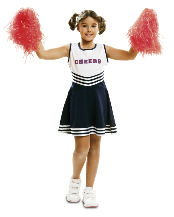 Součástí kostýmu jsou šaty. Šaty bez rukávů mají vrchní díl bílý s tmavomodrým lemováním. Nad pasem jsou tři tmavomodré proužky. Na hrudníku je růžový nápis CHEERS. Sukně je tmavomodrá se třemi bílými proužky na sponím lemu.