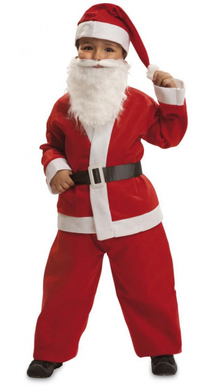 Součástí kostýmu je červený žaket s bílým lemováním, červené kalhoty, černý pásek s bílou sponou, červená čepice s bílým lemem a bílou bambulí, bílý plnovous na gumičku - pouze u velikostí od 3-4 roků.