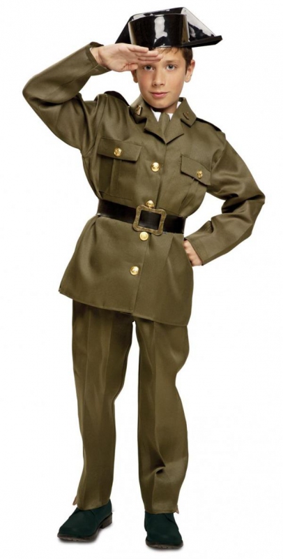 Součástí kostýmu je klobouk, žaket, pásek a kalhoty. Tmavozelený žaket s dlouhým rukávem má na hrudníku dvě kapsy zdobené zlatými knoflíky. Stejné knoflíky slouží jako zapínání. Součástí kostýmu jsou také tmavozelené kalhoty, černý pásek se zlatou sponou a černý klobouk. Límec je zdoben dvěma odznaky.
