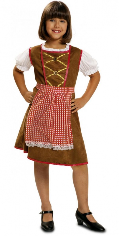 Součástí kostýmu je zástěra a šaty. Hnědé, červeně lemované šaty mají krátké nabírané bílé rukávy. Na hrudníku je červeně lemovaná vsadka se zlatou stuhou našitou do kříže a zdobenou knoflíky. U krku je malý bílý volánek. Kostým doplňuje červenobílá kostkovaná zástěra, která má na spodním lemu našitou bílou krajku.