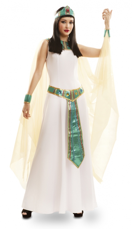 Součástí kostýmu jsou šaty se závojem a čelenka. Dlouhé bílé šaty bez rukávů jsou dole rozšířené. Kolem krku a pasu mají ozdobnou zelenou látku posetou barevnými kamínky, zlatou, modrou a červenou stužkou.Ve stejném designu je i čelenka, která je navíc zdobena velkou zlatou broží s červeným kamenem. Na pásku od pupku dolů ke kolenům volně visí zelený pruh látky také zdobený stužkami. Na zádech je k šatům přišitý krémový závoj, který je přišit i k zeleným zlatě lemovaným náramkům.