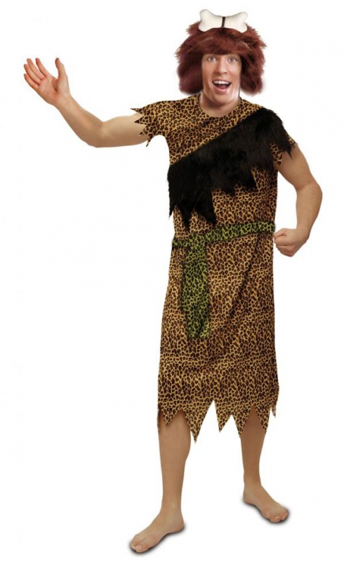 Součástí kostýmu je čelenka, šaty a pásek. Hnědé šaty v imitaci zvířecí kůže mají krátké cípaté rukávy i spodní díl sukně. Na hrudníku mají černý chlupatý a cípatý šikmý pruh látky. Ke kostýmu patří i čelenka s kostí a pásek v barvě šatů.