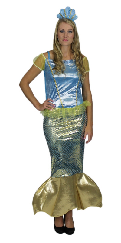 Součástí kostýmu jsou šaty a čelenka. Spodní díl šatů je zlatý s natištěnými šupinami a zlatým rybím ocasem. Vrchní díl je světlemodrý zdobený zlatou stuhou a se žlutými krátkými průsvitnými rukávy. Kolem boků je přišit volánek z průhledné žluté látky. kostým je doplněn modrou flitrovou čelenkou, která má tvar mušle. Je zdobená zlatými proužky.