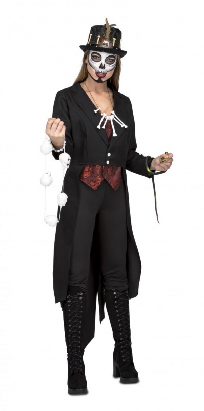 Součástí kostýmu je žaket s vestou, pásek, náhrdelník, náramek, had a lebky.