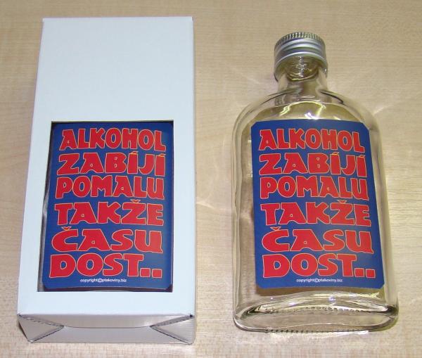 Klasická skleněná placačka 200 ml, jen vylepšená o vtipný nápis. Dodávána prázdná placačka v dárkové krabičce.