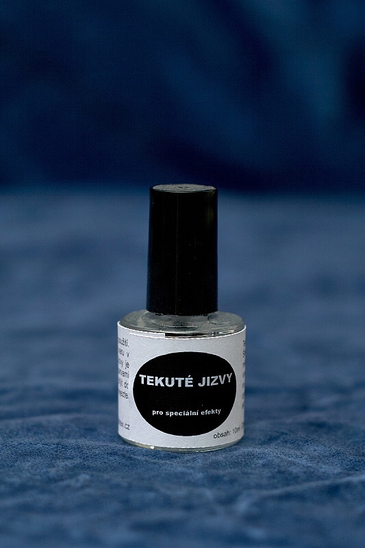 Po natření na kůži štětečkem velmi rychle zasychá a vytváří pružný celulózový film, který kůži stáhne a vytvoří tak efekt realistické zarostlé jizvy a defomované kůže. Čím více vrstev se použije tím je výsledná jizva hlubší. Tento postup používají profesionální filmoví maskéři po celém světě. obsah: 10ml Složení: pyroxylin, ether, ethanol, castor oil